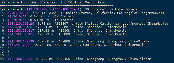 移动回程:走移动洛杉矶节点直连回国