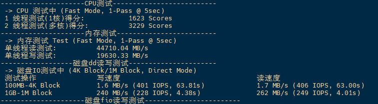 VPS部分性能测试结果: