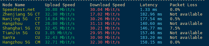 Speedtest国内多节点测试上下行速度:
