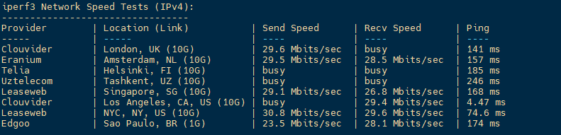 iperf3测试欧美节点的数据: