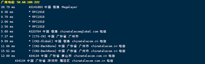 回程,到大陆电信: CN2链路回来