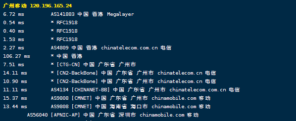 回程,到大陆移动:CN2链路回来