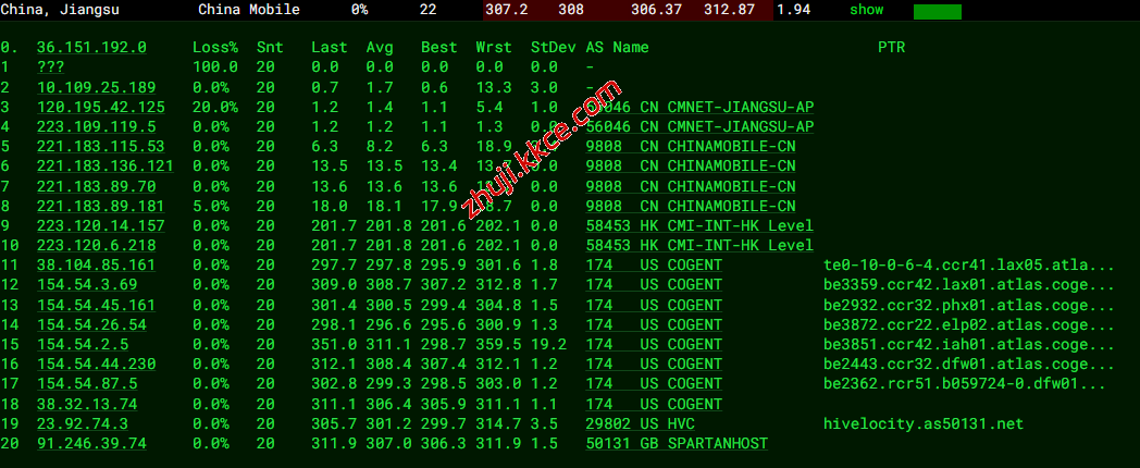 电信回程:从达拉斯机房到圣何塞cogentco机房,然后直接回国,