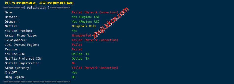 流媒体解锁测试结果: