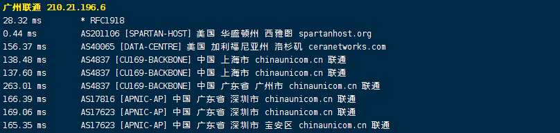 联通回程:我们发现与电信的走法完全一致,
