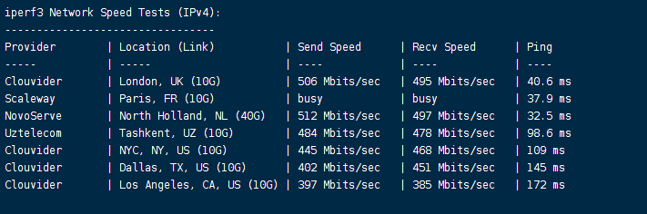 VPS部分性能测试结果: