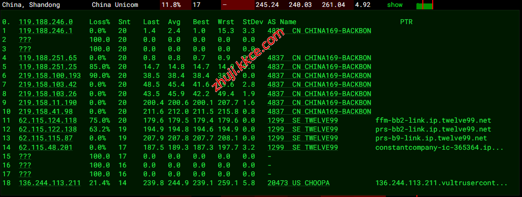 联通去程:骨干网对接TWELVE99去机房