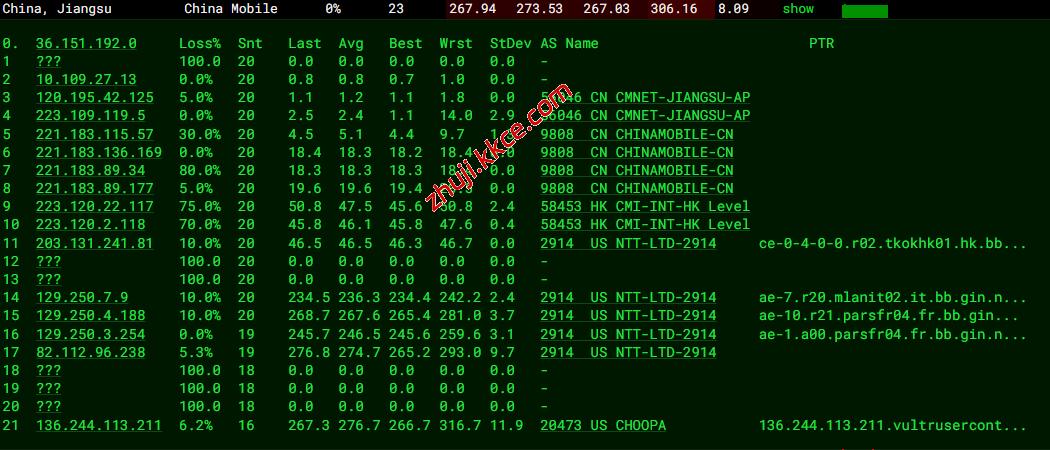 移动去程:直连移动香港节点转NTT去机房
