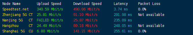 用国内三网多节点测速: