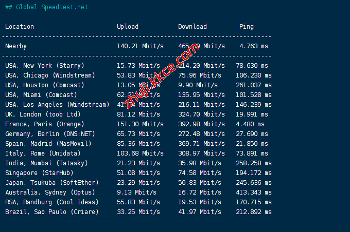 speedtest国际节点测速: