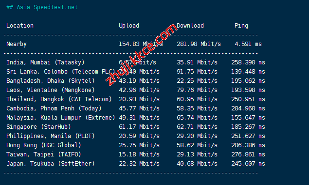speedtest亚洲区域节点测速: