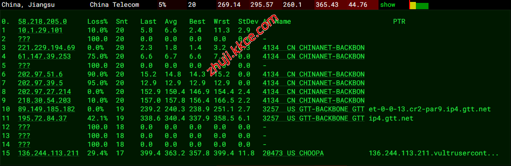电信去程:骨干网对接GTT去机房