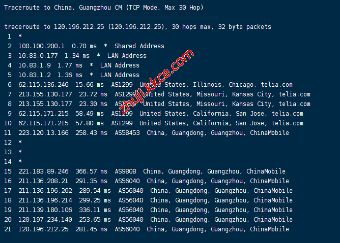 移动去程:直连移动香港节点对接TWELVE99去机房