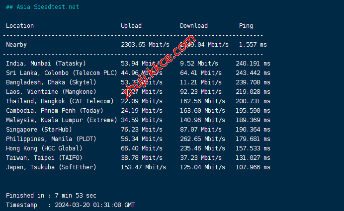 speedtest亚洲区域节点测速: