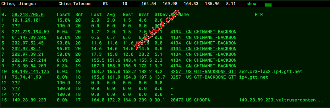 电信回程:走gtt回国