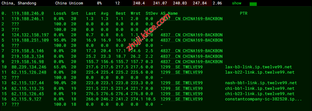 联通去程:骨干网对接TWELVE99去机房