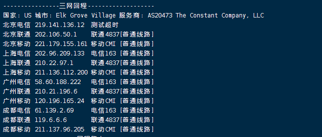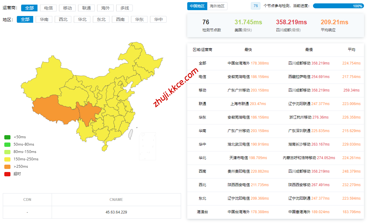 国内三网多节点的延迟测试数据: