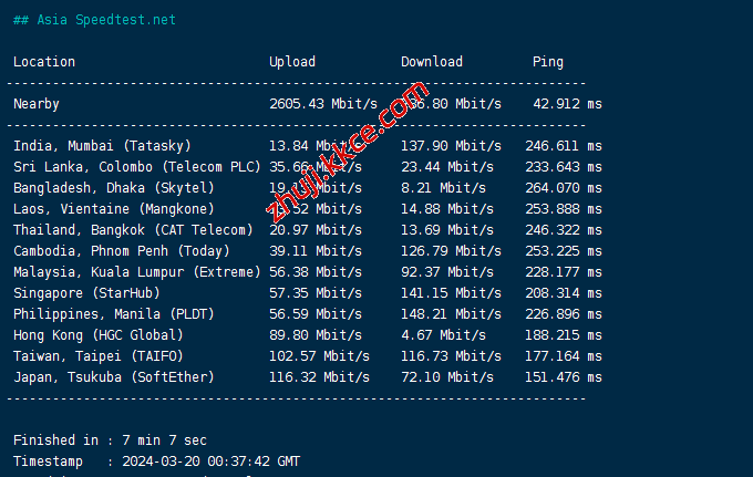 speedtest亚洲区域节点测速: