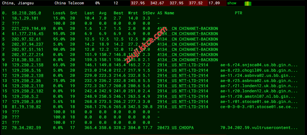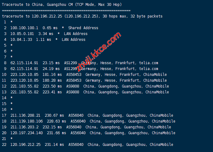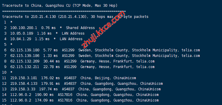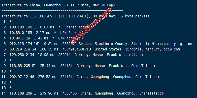 电信回程:走gtt转pccw到美国再走ntt到德国回国