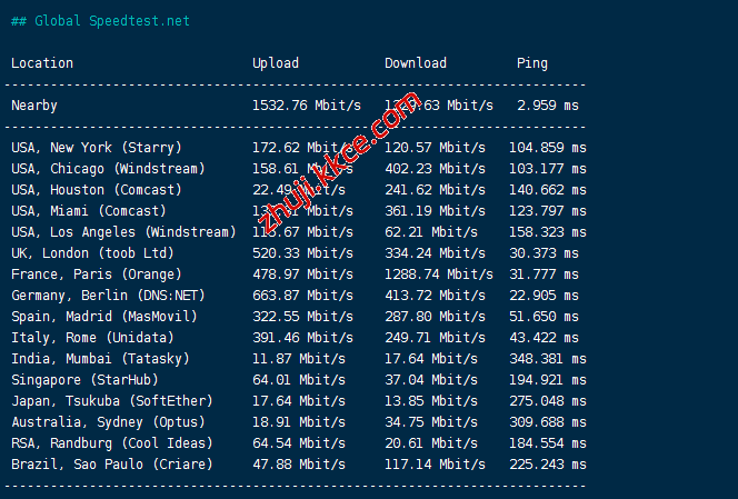 speedtest国际节点测速: