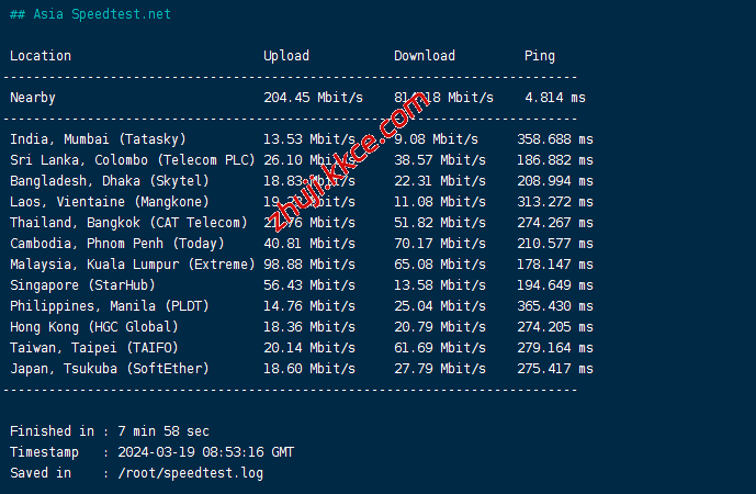 speedtest亚洲区域节点测速: