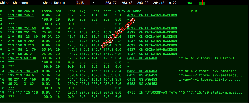联通回程:走tatacommunications转新加坡电信节点回国