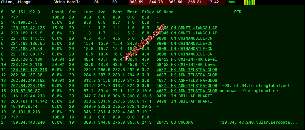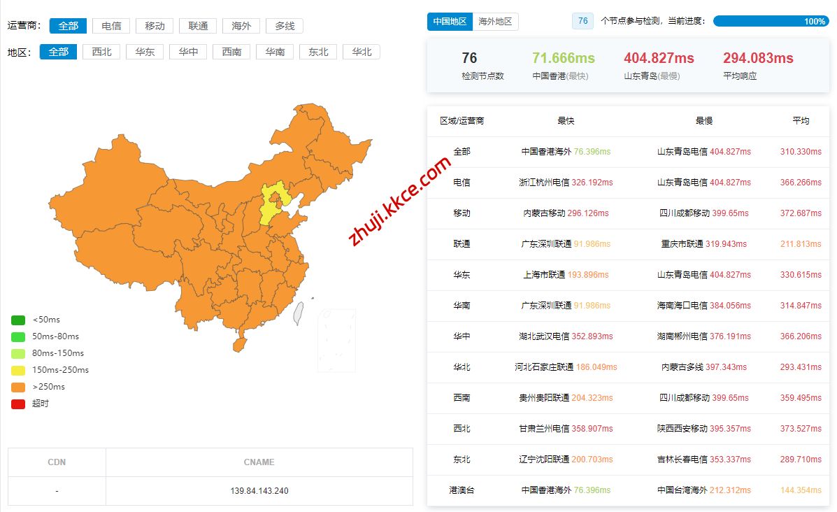 国内三网多节点的延迟测试数据: