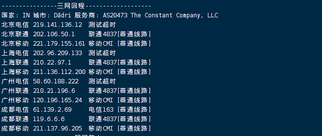移动去程:直连移动香港节点转印度Airtel去机房