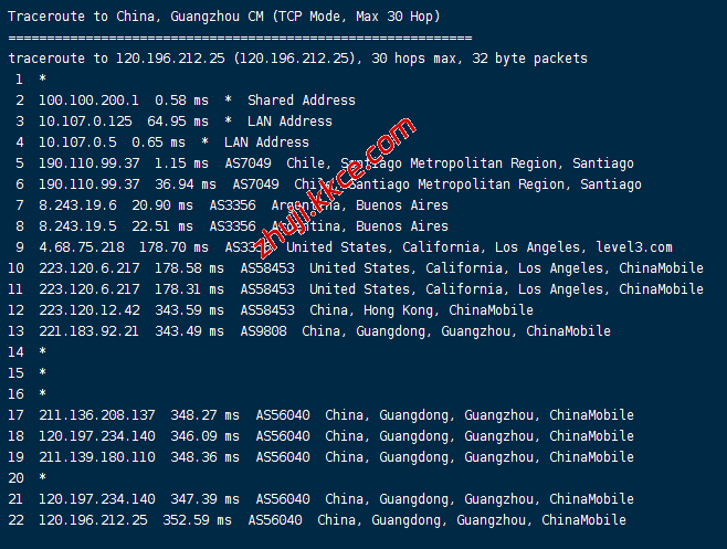 移动回程:走level3去美国然后再回国