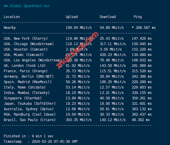 speedtest国际节点测速: