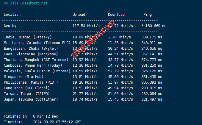 speedtest亚洲区域节点测速: