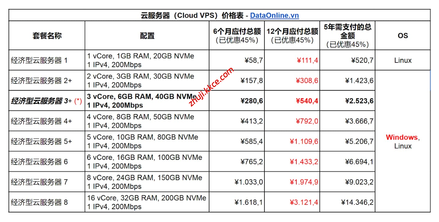 由于越南的飞速发展,近年来越来越多的用户开始布局越南互联网市场,因此越南cloud vps业务也越来越火爆。由于内存和SSD成本上涨,许多越南VPS服务商纷纷提高价格,这使得DataOnline.vn的VPS价格显得极具吸引力(目前DataOnline提供多种套餐,活动价仅 ¥111/年(折后价),最高优惠45%)。DataOnline是一家越南知名云计算与数据中心服务商,主要核心业务包括Cloud/VPS、独立服务器出租、机柜托管等。
