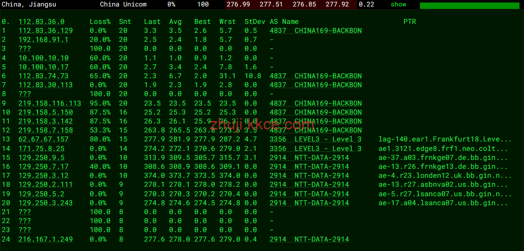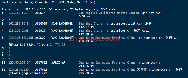 电信回程: 走联通AS10099+AS9929高端线路回国