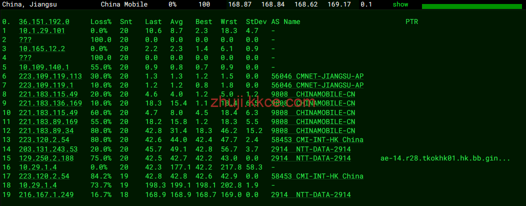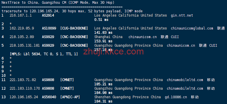 移动回程: 走联通AS10099+AS9929高端线路回国