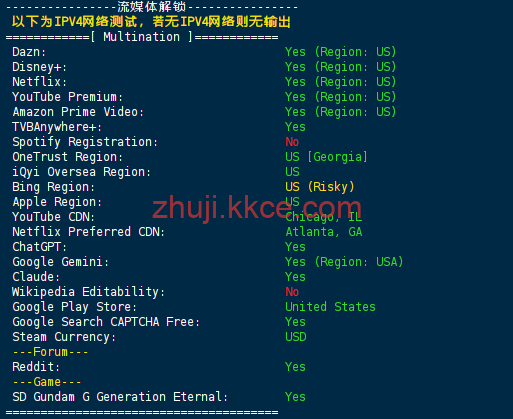 流媒体全能解锁: 完整覆盖 Netflix、YouTube Premium、ChatGPT 等主流服务。YouTube CDN 节点识别为芝加哥,在美东地区拥有极佳的缓存加载速度。