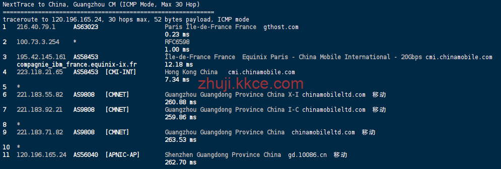 中国移动: 经由 CMI 巴黎本地交换中心直连,通过 Equinix Paris 实现极短跳数接入。