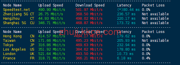 Speedtest国内多节点以及部分海外测试上下行速度: