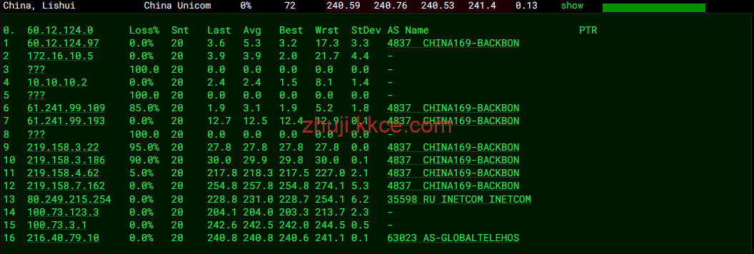 中国联通 (China Unicom):表现亮眼,经 RU INETCOM 汇聚后直连联通国际出口,链路波动极小,稳定性优异。