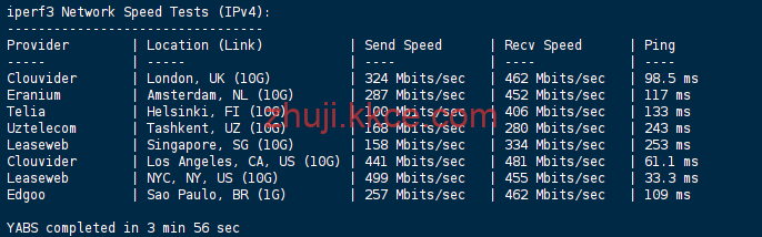 VPS部分性能测试结果: