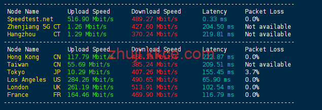 Speedtest国内多节点以及部分海外测试上下行速度:
