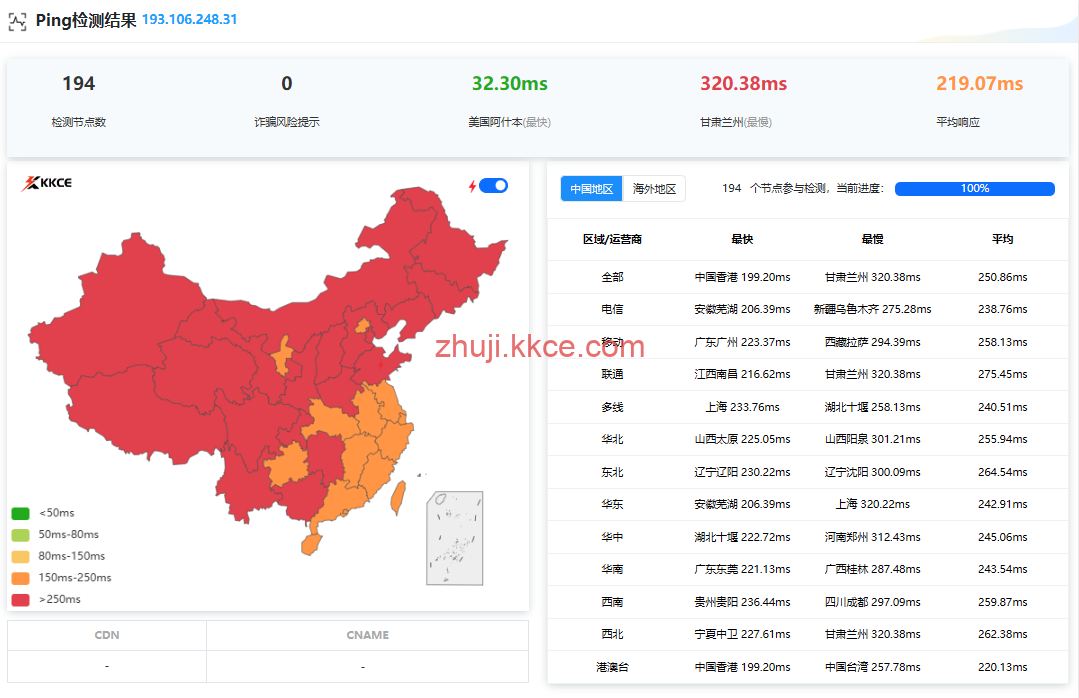 国内三网多节点的延迟测试数据: