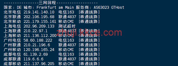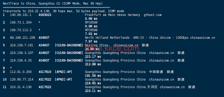 中国联通: 路径表现优异,通过联通骨干网接入 AMS-IX(阿姆斯特丹) 交换中心直达德国。