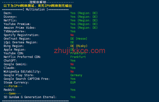 为便于用户评估该服务对特定业务的适配程度,以下提供了基于该机房的详细性能监测数据,包括流媒体解锁测试、全球延迟分布及链路追踪信息。