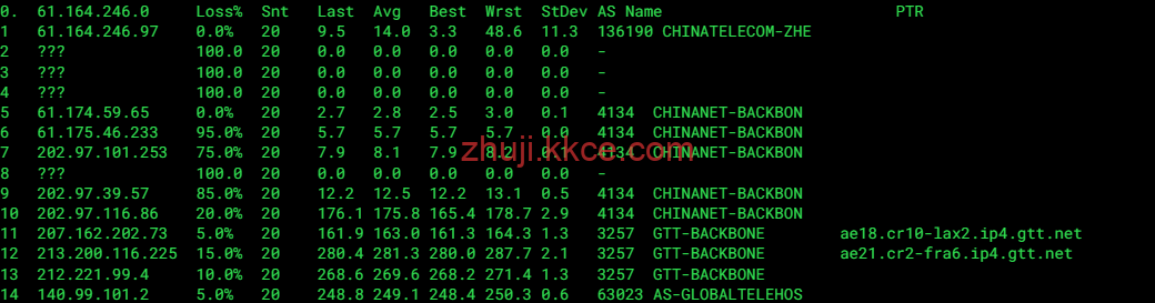 中国电信 (China Telecom): 洛杉矶/欧洲直连,强制经由 AS4134 (CHINANET) 德国出口骨干网直回。