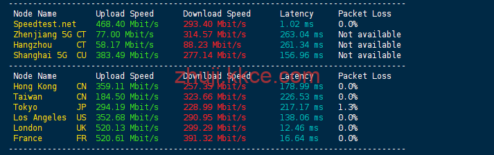 Speedtest国内多节点测试以及部分国际上下行速度: