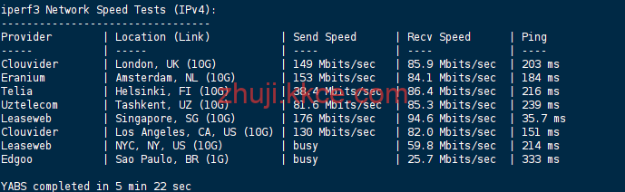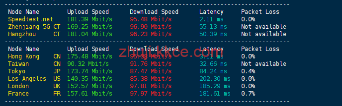 Speedtest国内多节点以及海外部分节点测试上下行速度: