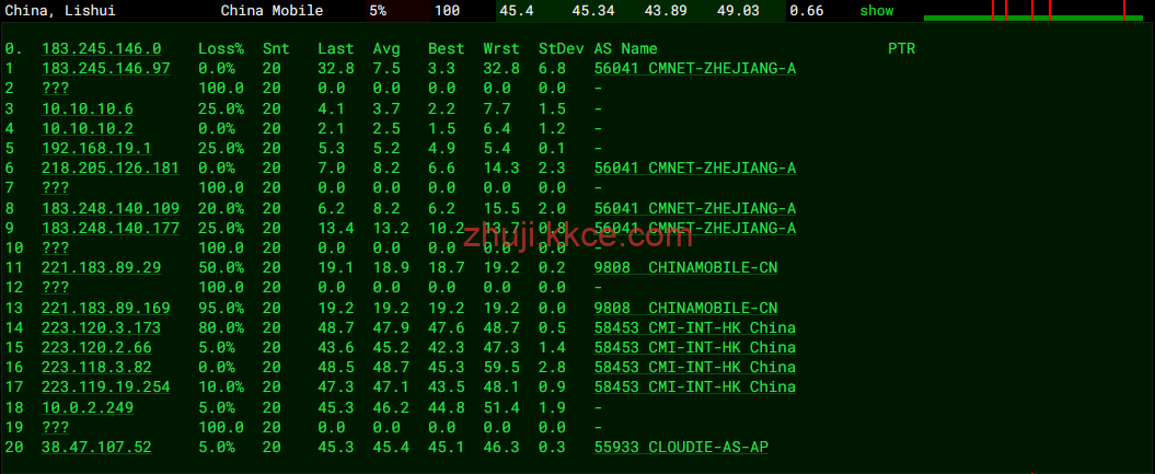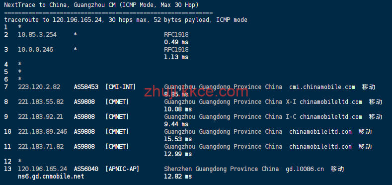 中国移动 (China Mobile): 流量经由 CMI (AS58453) 移动国际骨干网直回,实测延迟稳定在 12ms 左右。