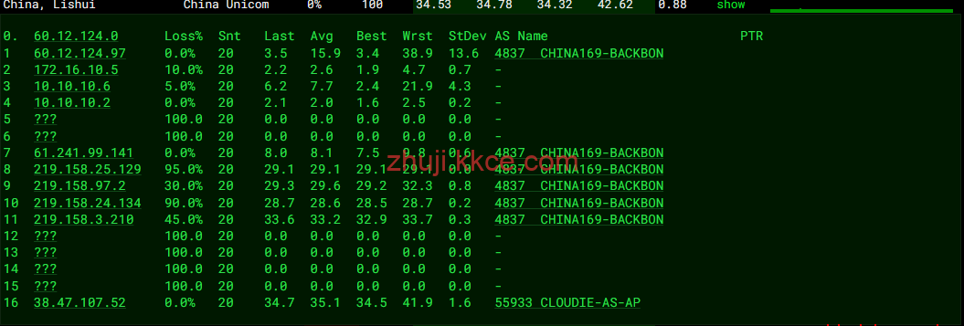 中国联通: 流量经由 AS4837 (CU169) 骨干网直连,在香港本地接驳接入。