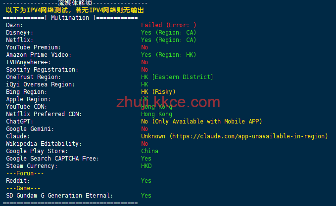 - IP 资产属性: 经实测,该节点分配的 IP 具备独特的跨区能力,可解锁 Netflix (CA – 加拿大区) 与 BiliBili (港澳台)。同时原生支持 iQIYI International (HK),适合作为港区流媒体备用节点。