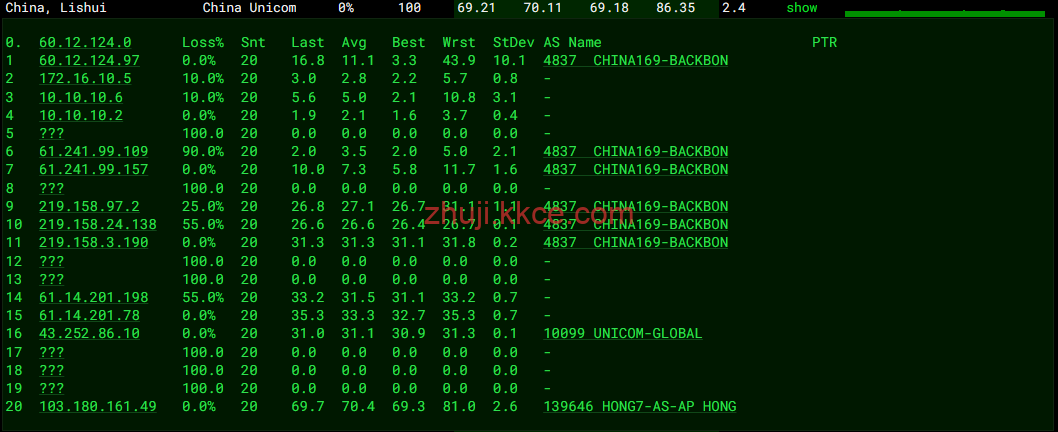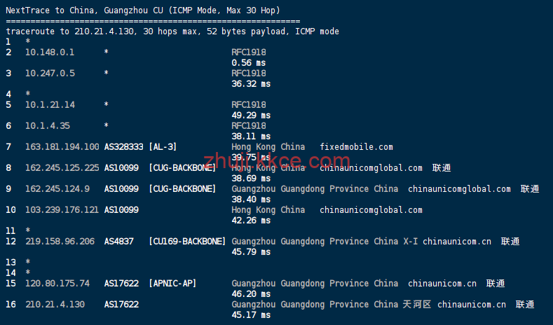 中国联通:经由联通骨干网,对接 AS10099 (Unicom Global) 实现直连。